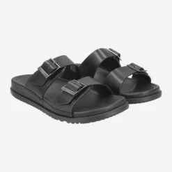 Black sandals from Fratelli Vanni, the upper is made of smooth leather. A brass-colored metal closure facilitates the entry. Inside the shoe is equipped with leather lining, the leather sole provides a good wearing comfort.