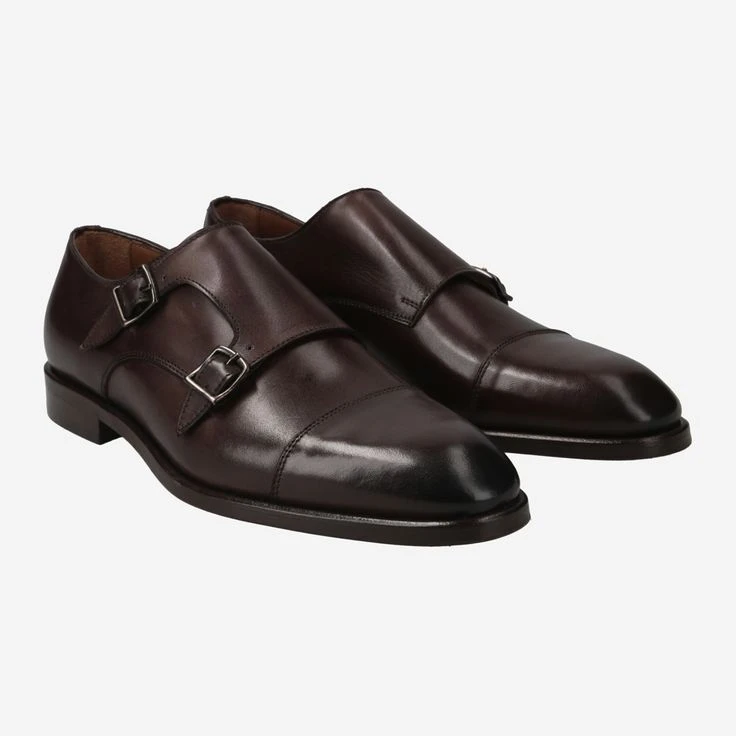 - Metal clasp, Double monk, Stitched sole, Breathable, Stretch inserts
