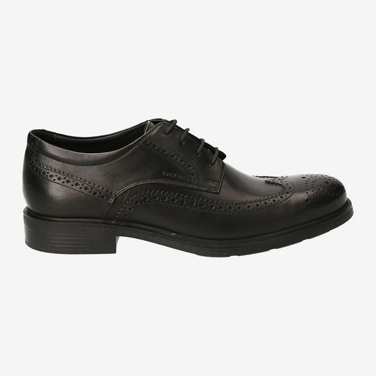 Whether to the office or to a special occasion: These luxurious lace-up shoes from GEOX are an exclusive and versatile companion. Their upper material made of black smooth leather shows a refined Lyra perforation. Inside, the shoe offers maximum comfort thanks to the fine leather cover sole as well as the soft textile lining. Thanks to the sturdy rubber sole, the wearer is also absolutely slip-resistant on the road.