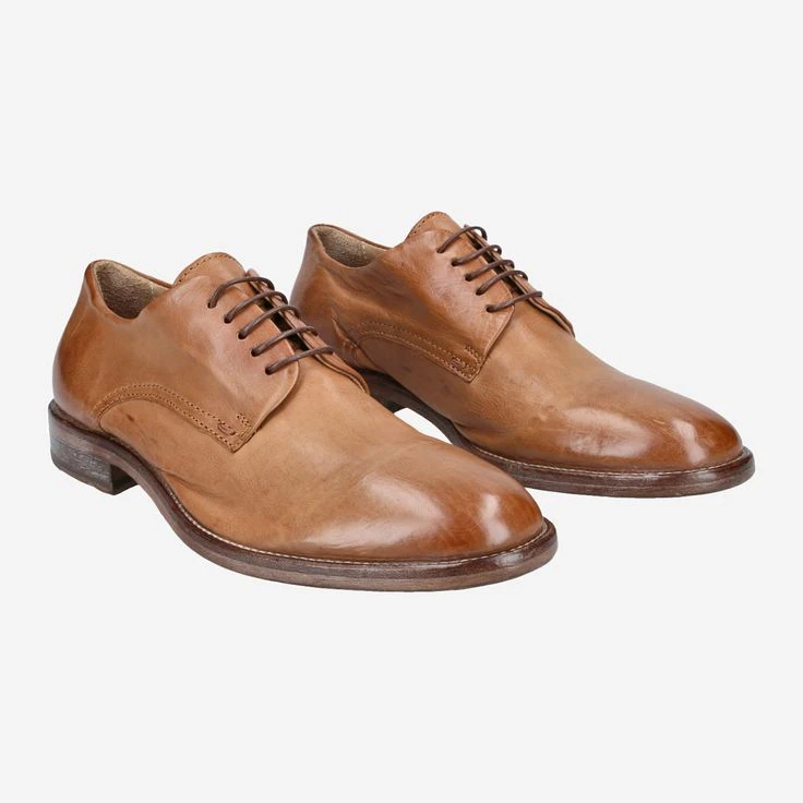 The manufacture Moma Frago works out individual, strong character models in traditional handwork. Especially the model „Cinnamon“ appeals to individualists who have high demands on quality and workmanship. The brown smooth leather of this lace-up shoe has been refined in a high-quality vintage look. Enjoy the authentic character of this handmade masterpiece.
