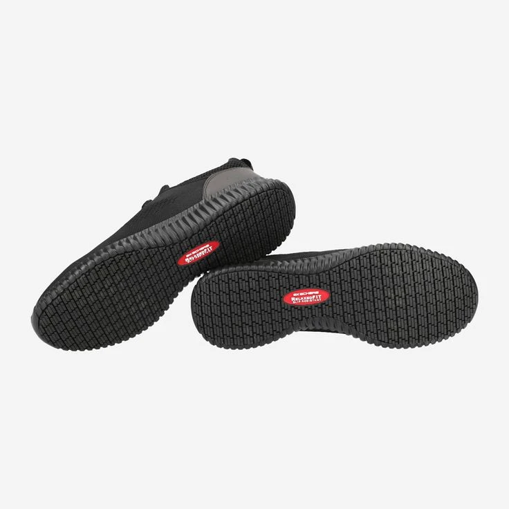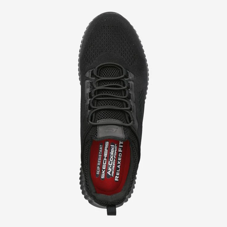 GO WORK! This black work shoe from Skechers inspires with the cushioning Air-Cooled Memory Foam™ insole. This is removable if you want to wear your own insoles in it. In addition, the Relaxed-Fit® width gives you enough room in the toe area. Ideal for work, for leisure and simply for every day!